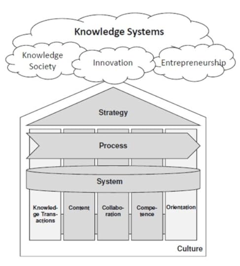 Five functional pillars — content, collaboration, competence, orientation, and knowledge transactions — support the three knowledge system layers:
