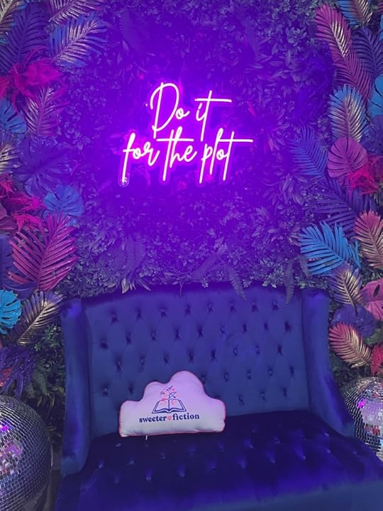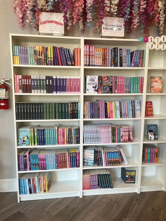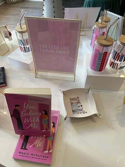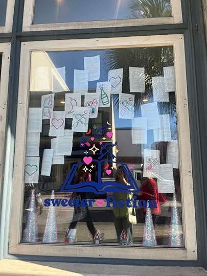 So when I heard there was a special bookstore opening up on King Street, I was excited and intrigued. There is already a well-known, popular bookstore on King Street called Buxton Books. But as a librarian and a romance author, I wanted to know more. Luckily, a few weeks ago while we were visiting family for New Year’s, we found the store, Sweeter Than Fiction. What I didn’t realize was that it was a bookstore devoted to both romance novels and everything Taylor Swift (I’m not sure how I missed those two huge details!). Of course, the moment we entered the store, my son said to my husband and son-in-law, “This is very pink.” So they left to do something else, leaving me and my daughter to stare in shock at the beauty around us. I’ll let this carousel tell that story.