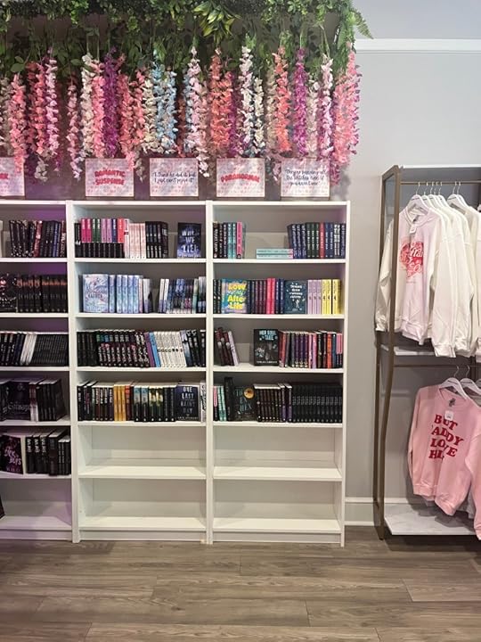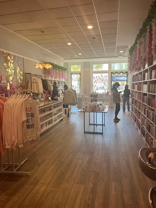 This charming store is truly devoted to all things Taylor Swift and romance novels. As you can see by the photos, there are lots of books and other merchandise, including tote bags, pen cases, notebooks, water bottles, etc. There’s also a cute couch area where girls can take Instagram/TT photos with their friends. While the books on the shelves are mostly Young Adult/New Adult fantasy/romantasy/paranormal novels, there are plenty of romcoms and other contemporary romances. And the store can order anything else you prefer. Also, they are becoming known for their in-person book signings. I’d recommend you follow them on Instagram or TT (for as long as that lasts) and jump quickly when the signing tickets go on sale. And I can only imagine how crowded this store will be during YA’LL Fest, the city’s Young Adult book festival held every year in November.
