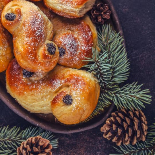 Saint Lucia DayThis is the festival of lights celebrated on December 13 in honor of St. Lucia of Sweden, a young girl who was martyred around the year 303 AD, during the reign of Diocletian. When I was a kid, we used to process around school (a public school!) holding real candles (how did we ever survive the 70’s and 80’s?!?) which represented St. Lucia’s triumph over darkness. Then we’d get hot chocolate and St. Lucia buns in the cafeteria. Now, in honor of this holiday, I plug in the lights on my Christmas trees and decorate them.