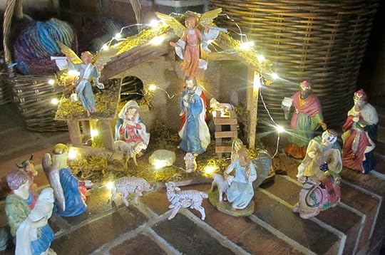 Manger SceneI bought this crèche not long after we were married, and we even took it overseas when my husband was stationed in Korea. A crèche or creche, from the Latin cripia meaning crib or cradle, refers to a group of small figures arranged to represent the nativity, aka the birth of Jesus Christ. When I put up our manger scene, I hide the baby Jesus until Christmas morning. And the kids, if they’re home, still move the Wise Men around until the Epiphany on January 6th. (Did I mention they’re grown and they still play with the manger scene?)