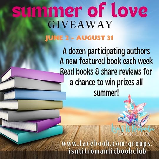 This summer, the Isn’t It Romantic Book Club Facebook Group is sponsoring 12 weeks of free summer reads from some of your favorite authors. There will be lots of free books, swag, and other gifts. This is the perfect event for a summer full of reading new stories and finding your new favorite authors!