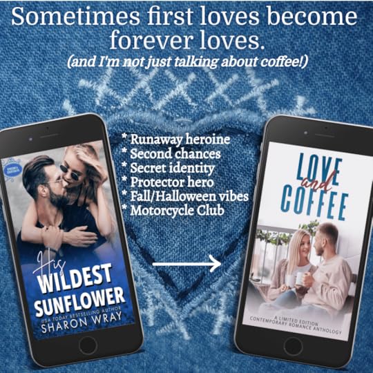 Love & CoffeeA new limited edition romance anthologyThis new anthology features meet-cutes that take place in a bookstore/coffee shop. The heroines are looking for their HEA but never expected it to happen while picking up a cup of coffee or picking out their next book boyfriend. Or, as in the case of Sophie (the heroine of His Wildest Sunflower), while she’s baking sunflower cupcakes and hiding out from the dangerous outlaw bikers searching for her.