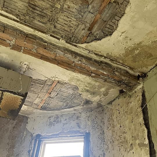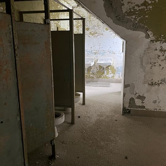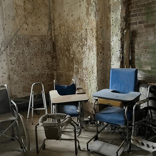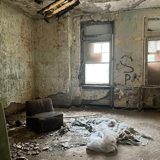 Walking through the hollow halls, I felt time folding. The peeling paint, the broken windows, the drafts that carry distant dust, and where every detail felt heavy with silence. And that odor, A strange, tangy mix of mildew, chemicals, earth, and something metallic, is still with me although I’ve been home for a week. The stench (there’s no other word for it) anchored me in a type of discomfort that remains. Even my car still holds it now, a ghost of that visit.