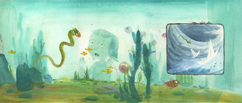 Image © Catia ChienIn it a little girl befriends the sea serpent who plops into her bath from the faucet. They play together, planning when they will return him to the sea. When the time finally comes, they are both reluctant, but recognize that he is growing too much to stay with the girl. It's a poignant parting, but very sweet and gentle.