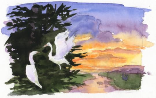 My upcoming picture book TWILIGHT CHANT is all about a specific time of day – twilight – and progresses from sunset to full night. This meant that when planning the art I needed a color palette that would work with very different lighting situations, and that I needed to plan out the sequence carefully, so that the time of day progresses smoothly from one image to another.