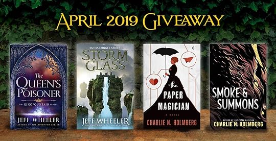 Congratulations to Alex from California, winner of our April giveaway! Alex had the choice between two books by Jeff Wheeler or two books by Charlie N. Holmberg. He chose The Queen’s Poisoner by Jeff Wheeler (Details on Amazon).