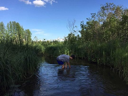 The three of us returned to the spot a third and final time on our last afternoon in the state park. We wanted to wade the first section of the river. There the Mississippi is a peaceful, winding channel lined with cattails, sedge, wildflowers, and tamarack trees. The narrow, quiet stream never runs deeper than mid-thigh. You can see straight down to its sandy gravel bottom, where young fish dart around your feet. Eventually human sounds recede, and there’s only the swoosh-swoosh of your legs through the water. You don’t speak. You don’t want to intrude. You just want to lose yourself in the landscape. Your breathing relaxes, sinking slowly from your upper chest into your belly. A half-mile later, when you reach the plank steps that signal the end of the walkable portion of the river, you don’t want to leave.