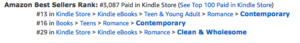 My goal for Protect My Heart was to get in the top 100 of any category on Amazon. It’s my first book after all, so I’m not super well known yet. This is a snapshot of where it ranks this morning.