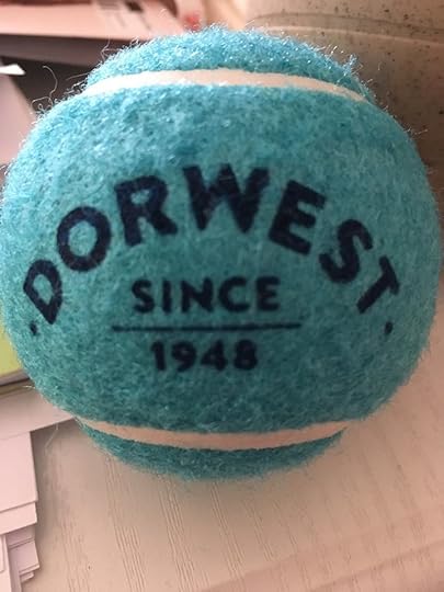 Dad met the very nice people from Dorwest while we as at Crufties and while he was talking the hooman gave me a ball 'to play with'....As he dropped it dad said 'he doesn't really play with balls'......At this point the hooman said 'Ah I'll put it away then' Dad said 'he doesn't really play with balls but he doesn't really give them back either' The hooman smiled as he reached down for it but he wasn't smiling when I moved me head quickly and put me nose on the ball.....I didn't move me head but looked up at him and that passed the message on quite well and he moved his hand away and didn't try that again. Sorry nice hooman but the vetandhairyman once took some away from me when I was asleep and that's never gonna happen again.....So here it is.....not to be chewed, or chased or played with......just MINE...