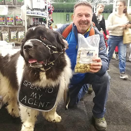 A few weeks before Crufts Monty and Cookie had ran out of their nightly Whitefish and seaweed burgers that we order from Sea treats up in Grimsby. Bad management on my part I must admit but I thought as we were heading to the show it was a great opportunity to visit their stand and introduce Monty. Those few weeks meant two very sulky Newfys every evening as they were missing their fishy treats. There aren't many snacks that last them more than a couple of seconds but the burgers are noisily and hungrily crunched on for several minutes and very much enjoyed.With this in mind Monty literally dragged me to the Sea treats stand as soon as the aroma hit his nostrils and we spent a good time there picking up supplies not only for Monty and Cookie but some smaller fishcake bites for the three spaniels. We once again have happy dogs and 'treat time' is anticipated with plenty of wagging tails and drooly mouths.For more information visit their website at https://seatreats.co.uk/