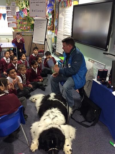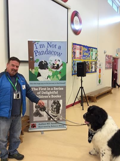 On Tuesday this week we visited Westfield Primary School in Runcorn to share 'I'm not a Pandacow' with the children there. We started with an assembly for the whole school and we did a Q and A year group by year group and we had some fabulous questions. As is usual most of the children wanted to know more about Monty and they were enthralled to hear about this huge Newfoundland dog in the hall.Following the assembly we visited each class and read an excerpt from the book, gave the children another chance to ask questions and the bit they all love the chance to get close and personal. Monty as always really enjoys this bit and is quite happy to be cuddled fussed and give kisses as is the Newfy way.It doesn't matter how many of these visits we do, I never get tired of seeing the children's faces when they first see Monty and just how much love exists naturally between youngsters and dogs. Thank you Westfield for your welcome and hospitality we hope to come back again in the future.