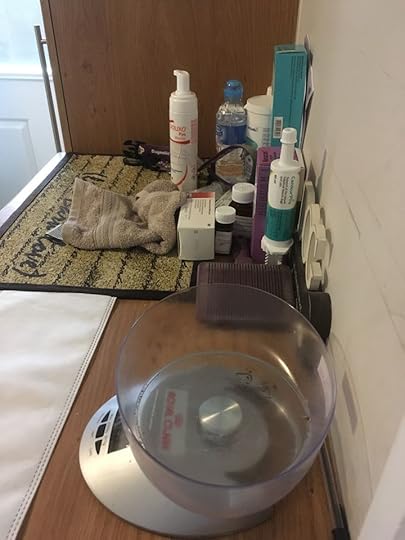 Tuesday was the day for Cookie's scheduled operation and it was incredibly quiet in the house. Usually at 6.30 when I come down to feed the dogs she is the first one to greet me, standing with her front legs on the third stair up so she can get the kisses in first. As I came down Monty stood back as if she was there, waiting his turn which is always second when the heffalump is around. He was very subdued all morning and if I didn't know better I'd think he was actually missing his hooligan sister. As the morning went on I was concentrating on what Tom the vet had said that no news was good news but almost immediately my phone rang. As I feared it was the hospital and Tom explained that the operation had been cancelled. Cookie was ready to go, shaved and anaesthetised when she suddenly had an upset stomach. Without going into graphic details it meant that her number 2's were looser and more explosive than normal and the risk of infection was too great. Although obviously disappointed and frustrated it was actually very reassuring to hear that Cookie's welfare was the number one priority.Later on that afternoon we travelled over to pick Cookie up and Tom went through the medication while she was being blow dried after her 'clean up'. Christmas and New Year was now obviously an issue in terms of rescheduling the operation and apart from the stomach upset she had some infected spots on her leg that needed cleaning up. We left with a shaved and sweet smelling girl but she was certainly feeling sorry for herself and was desperate to get back into the car.The Help'Emup harness has proved invaluable already and really offers fantastic support when moving a 60kg dog around or helping them into a vehicle. This has been a fabulous aid and worth every penny for the peace of mind it gives.Sadly for Cookie due to the fact she'd had loose stools she was unable to have any Metacam until she did three solid poops and as far as pain relief, all she had was the paracetamol and codeine tablets we brought home.Thankfully her stomach upset cleared straight up and she was able to resume the Metacam on Thursday so hopefully that will help to ease her discomfort but she had a very painful night last night and was finding it very difficult to settle.One of the main recommendations from a number of people has been to make sure the floor isn't slippery. When we planned the house with Newfies in mind we went for a tiled floor as both of them struggle with the heat even in the winter. We have added non slip rubber backed industrial mats which are very adaptable and can be moved around as needed.We have totally covered the room where Cookie will recover from her operation with mats and she is certainly finding it uncomfortable at times so we left the ceiling fan on for her last night.I'm sure there are a few places that supply the mats but we have used Splendid Pets after some very good recommendations and we've always had very good reliable and speedy service from them. The link is here http://www.splendidpets.co.uk/dirt-trappers-c12The current situation is that we are trying to clear the spots on Cookies leg with Douxo Pyo Foam Mousse twice a day and Douxo Calm shampoo. She is provisionally booked back in for her operation on the 27th December but because that's an emergency only day at the hospital it will be cancelled if anything more serious comes in. We also need to make sure that her infected sores are cleared up as infection is our biggest enemy and we know that the staff at Liverpool University hospital will not take any risks. Wish her luck.
