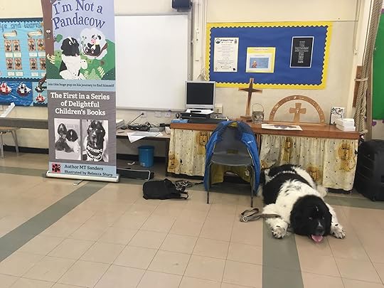 Yesterday saw us back into school for the first time since the summer holidays and although it's been a while Monty knew at 6am that it was a school day as he waited patiently by the front door. He enjoys his trips out so much that it only takes the slightest change in the usual routine for him to work out that he's off to see the 'mini hoomans'.Despite it being the middle of September it was a very warm morning when we arrived in Rochdale even at 8.30am so plenty of Monty panting to come. We had a lovely welcome at the school and Monty was immediately very popular as he said hello to staff and pupils whilst demonstrating his best Newfy bum waggle. The day started with an assembly for KS1 and their faces were a picture as they entered the hall with some fabulous smiles and gasps as they saw their special visitor. After being introduced I told the children a little about Monty and then asked if there were any questions, which there were, plenty.I followed this by reading I'm not a Pandacow and the children listened really well and also joined in enthusiastically by finishing off the verses with squeals of 'Pandacow'.We immediately did a second assembly for the KS2 children and this time opened up with a Q and A with lots of great questions. Inevitably I get asked about Monty as a puppy and it's always a very popular part of our visits. The fact that this fantastically behaved, relaxed and almost bomb proof dog was a naughty puppy always gets the children very interested. It is a great opportunity to highlight how much work goes into having a puppy, whatever the size. I then read the story again, and again this was very well received and beautifully listened to by the children. We then had a break before each class returned to the hall to get the chance in small groups to come and say hello to Monty and this is always such a lovely part of the day. There is always such a variety of reactions from nervous to very excited and pretty much every emotion in between. As is his way Monty was loving, calm and patient throughout and I am always so proud of what a lovely example of the breed he is.We left just as dinner tables were being set up and Monty certainly had the aroma of the days offerings in his nostrils as he was very much livelier as we left for the day. We'll be back sometime soon to sign books for those children who want one and there was also a certain amount of excitement at the thought of Cookie visiting with the next book in the series or even perhaps the Christmas book featuring the dogs.Thank you St Edwards for a lovely morning spent with great staff and fabulous pupils. If you would like information about our free school visits just head over to our school page on this website.