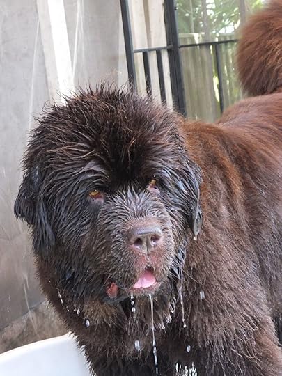 I was just sitting on the sofa next to Monty and, as I do having a chat about the school we're visiting tomorrow when I suddenly thought how strange this would have been to comprehend a few short years ago. After nearly 50 school visits, charity appearances, Crufts tours and the occasional nursing home it's very difficult to remember this very same newfydoof as an extremely naughty puppy and an even worse adolescent.But this was what he was and there were many, many days we questioned what possessed us to invite this massive hooligan to share our lives. It's strange now because when I'm in schools and asked what inspired me to start writing the 'Monty stories' it was this bad behaviour that was the catalyst.The children love to hear tales of chewed walls, destroyed cookers and sucked chickens but back then it wasn't something we ever conceived would take us to where we are now.So as we relax before reading stories and reliving puppy misdemeanours before a few hundred children tomorrow I can't help but marvel at this special breed and moreover this very special dog I call my best friend.Well done Monty Dogge....you've done good big fella....
