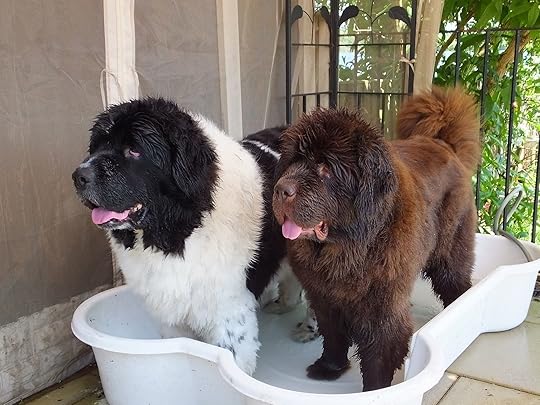 Such a busy week this week. On Monday we visited the under 5's nursery in Standish to help a birthday celebration and do a story time for the children. Monty was very popular as usual and very busy with newfydoof kisses and cuddles.On Tuesday we went back to St Andrews Primary school in Rochdale to sign books for the children after our visit last week. We had a very busy time and Monty had his picture taken with all those who bought a 'Pawtagraphed' copy.On Thursday we were in Warrington for a very enthusiastic welcome from the children and staff at St Margaret's C of E primary.I read I'm not a Pandacow in whole school assembly and the children seemed to have a really great time, joining in at the end of the verses which was great fun. Then we did some class visits where the children could ask questions about Monty or writing books and of course the chance for Newfydoof cuddles was very enthusiastically taken up.Now we have the bank holiday weekend and some leisurely walks and trips out for the dogs. For me though I'm busily working on the text for the Christmas book as Zoe is very close to finishing the illustrations for Monty and the Poppit Dragon. I also need to order another 200 Pandacow books because I keep running out which is a nice problem to have.It's a very exciting and hectic time but so much fun.Don't forget if you'd like a free school visit with either Monty and Cookie just email montynewf@googlemail.com and we'll sort it for you.