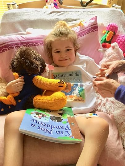 Recently we had the privilege, and I don't use that word lightly, to visit the beautiful Isla smiler. We were contacted by a mutual friend who thought that a visit from Monty and Cookie would be something that would put an extra wide smile on Isla's face. To put the visit into context I have put a summary of what happened with Isla by her mum Katherine.'On the 12 the august 2017 Isla woke up and tried to get herself out of bed. She managed a few steps down and then fell to the floor. I came in as I heard her quietly crying and she said her legs were not working. After visiting the doctor and then to A&E and up to the CAU. She had the most horrible night ever and was then moved to ward 11 and she was given a possible diagnosis of longitudal transverse myelitis. Update 13/04/2018vAfter surgery and radiotherapy Isla smiler has been diagnosed as having a diffuse intrinsic pontine glioma DIPG, the mutation of the tumour means that there are no other treatment options and the oncology team felt that the tumour is progressing. The news when we were told was devastating and continues to be so but we will never give up hope or doing our best to enjoy our precious time together. I just wanted to share this and raise awareness of childhood cancer as there is very little funding into this area of research. At some point we will do some awareness and fund raising.All the way through Isla has been beautiful and golden and her story of positivity and amazing support is here documented in Facebook. As a family we will take it day by day and face this together because that is what we do'.We really wanted to visit and thought a story time with Monty and Cookie would be something Isla would enjoy, and we took a little friend in the form of a cuddly Slobbernosserus. Our visit was a very humbling experience as we saw a family who have been dealt the cruellest of hands but are determined to fill Isla's world with laughter and positive experiences. The whole family are truly inspirational as is this amazingly brave and beautiful 7 year old who never stopped chatting and smiling throughout our visit.One of the things that the family have done is the #islastones Facebook page which has captured the imagination of around 5000 people and growing fast. It's all about painting a stone, whatever your ability and then hiding it. The description on the back asks people who find the stone to take a photo and post it to the page before re-hiding it. In this very busy world we all live in please take five minutes to have a look on the page and even if you can't take part you will already be helping raising awareness of this awful disease that is childhood cancer.https://www.facebook.com/groups/2127122047314808/