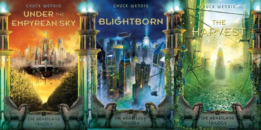 The books take place in the Heartland, a world taken over by bloodthirsty corn and ruled by a wealthy class who hover above the poor, hardscrabble Heartlanders in their floating cities.