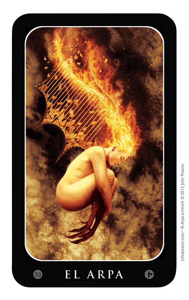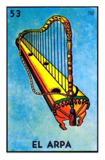 Here’s the ‘El Arpa’ card from the traditional Loteria game: