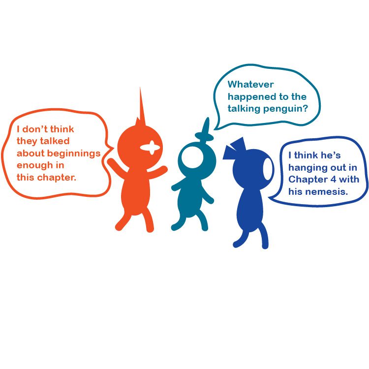 Scene time blossoms within the reader, triggered by your level of control over your material. A fistfight (wingfight?) between our friend the talking penguin (let’s call him Fred) and his nemesis Danger Duck might play out in seconds in real, objective time but seem to take long, fascinating minutes in the context of your story, as you draw out every detail of every slapping blow and every bead of feather-sweat knocked off in the process. You might slow things down even further by opening up the fight scene to show us a glimpse of Fred’s first wingfight as a chick. Or, sped up, the scene might be dismissed in a couple of lines, depending on your purpose in telling us about the fight. Perhaps it’s the aftermath you need the reader to fully understand. The important thing is that, in going back over your first draft, you know what you wanted to accomplish.