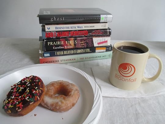 Yes – I’m reading six books at once. I pick which depending on my mood and never have trouble jumping right in where I left off. And, a new Studio Moonfall mug – a gift from my recent author visit. That mug is going to be seeing a lot of coffee!