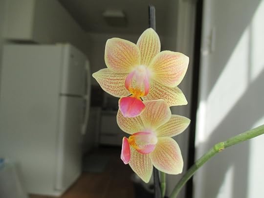My orchid has five precious blooms just now. The yellow and pink are so lovely!