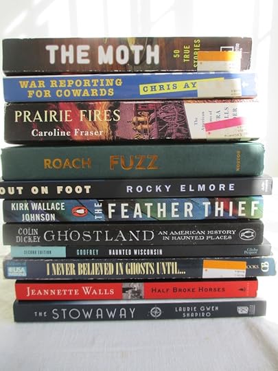 Three of them are ghost books (of course). Fuzz is the newest by one of my favorite authors, Mary Roach (can’t wait!). I’m looking forward to everything in this pile!
