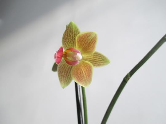 My lovely orchid is flowering! Three blooms and two more getting ready to open.