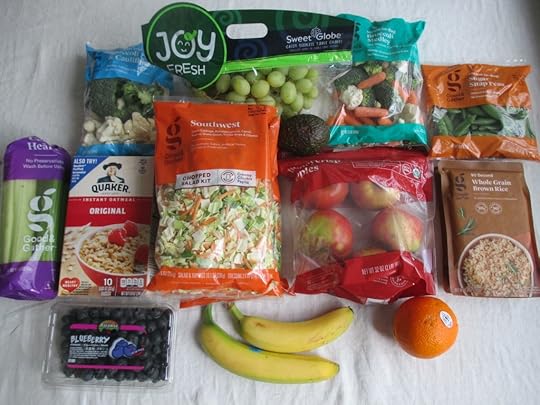 I get a kick out of other people’s grocery haul photos. So here’s mine for this week (I’m a vegetarian).