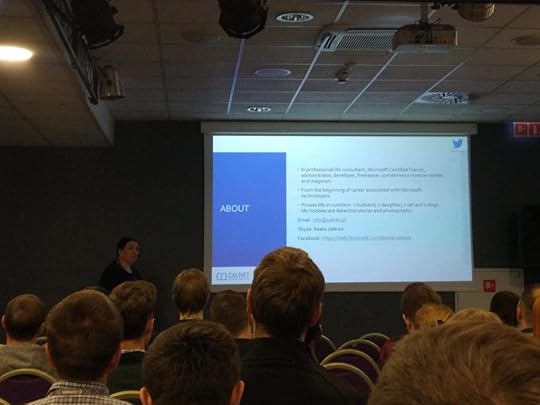 Po części oficjalnej nadszedł czas na ważny wybór: od której ścieżki zacząć? Każdy branch miał swoją oddzielną salę, aby można było w skupieniu kontemplować wybraną prezentację. I co teraz? Spojrzałam na harmonogram i mój wybór padł, jakżeby inaczej ;), na pierwsze wystąpienie na ścieżce .NET. A na niej niespodzianka, ponieważ…..