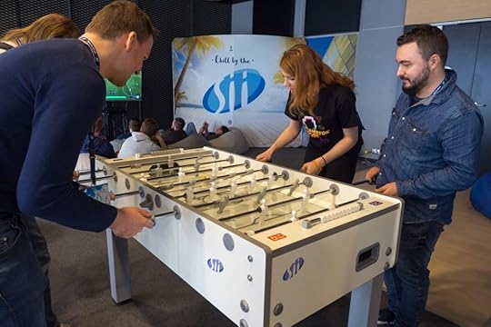 Po standardowej rejestracji i odebraniu swojej przepustki miałam jeszcze chwilę przed oficjalnym rozpoczęciem konferencji, aby podpatrzeć, jakież to atrakcje przygotowali dla nas organizatorzy. Gdy moim oczom ukazały się flipery, już wiedziałam, że ten dzień przejdzie do historii jako dzień, w którym Nela po raz pierwszy spróbowała swoich sił na tej maszynie. Nie byłam jedyną chętną – ten pomysł to był strzał w dziesiątkę, choć dla użytkowników dostępnych było więcej atrakcji. Do wyboru mieliśmy piłkarzyki oraz stare, dobre PlayStation. Brawa dla organizatorów. Bo przecież nie samymi prelekcjami programista żyje, a takie gry sprzyjają poznawaniu nowych znajomych.