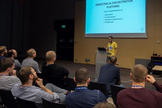 Na koniec prezentacji Piotr zaprosił wszystkich chętnych na swoje kilkudniowe szkolenie właśnie z Kubernetesa. Z naszej późniejszej rozmowy dowiedziałam się, że każdy, kto ma chęć od zera dowiedzieć się, jak dobrze zarządzać kontenerami oraz skalować je tak, aby nie narobić bałaganu, powinien zainteresować się tym tematem. Na dodatek jestem przekonana, że nasz prelegent wyjaśni to bardzo dobrze.