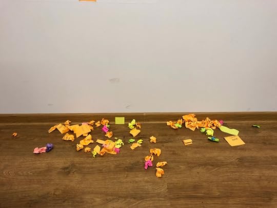 Chaotyczna eksploracja – zapisywanie i przyklejanie na ścianie pomarańczowych karteczek ze zdarzeniami biznesowymi. Zdania na karteczkach powinny być sformułowane w czasie przeszłym.