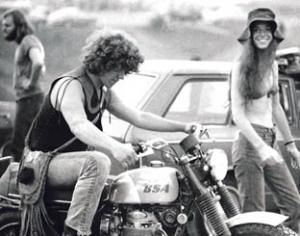 As time advanced, more problems arose. It soon appeared that the 50,000 attendee estimate was far too conservative and a new approximation jumped to 200,000. The young entrepreneurs rushed to bring in more toilets, water and food, though based on a sketchy bevvy of vendors, they had to fret over the possibility of having to airlift in rice as a backup food supply. Equally troublesome was the last-minute ban of off-duty police officers working the Festival. Through it all, Lang and his associates remained aloof; Lang riding around the festival grounds on a BSA motorcycle.