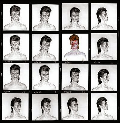 Bowie, throughout his career, would never venture far from the oddities of space and sci-fi. From the Man Who Sold the World to "Oh, You Pretty Things!" there was always a glimpse into another dimension. By Aladdin Sane, the B-Movie 50s had invaded 70s pop with odd misconception. In essence, the style and content of 70s Glam was rooted in rock stars as mutants from the future trying to "blend in" by assembling "authentic" versions of period clothing and getting it wrong. They had 50s shoulder pads and Elvis lamé suits (check), eyeliner and lipstick (so much for blending in); the lyrics drummed up the clichés of 30s gangster flicks, spaceships, motorbikes, aliens and jukeboxes. Indeed a new 50s were invented in the off-kilter 70s. American Graffiti was a box off smash; Elvis, Chuck Berry and Ricky Nelson topped the charts; The Rocky Horror Show opened at the Roxy and Grease on Broadway. The actual 1950s, in all their shadow, were elevated to Eden: a sparklingly innocent contrast to the weariness, grime and open sexuality of the early ’70s.