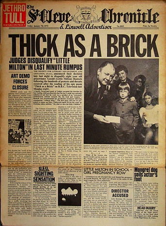 (Click Here to Read the St. Cleve Chronicle)In 1971, Jethro Tull had its biggest hit worldwide with the LP Aqualung that critics described as a concept album about religion, which Ian Anderson adamantly denied, indeed despised. Anderson decided to express his feelings about concept albums and prog-rock via parody, recording an album-length "song" called "Thick As A Brick," highlighting poetic passages that (as part of the album's concept) are put forth as the work of a precocious schoolboy who won a contest. Thick As A Brick has been slammed by haters as an example of the genre at its most excessive, while embraced by enthusiasts for the same reason. Few get the joke.The LP opens with a familiar three-minute passage that's less lumbering art-rock than folk-pop ditty. From there, the heaviness bullies its way in, yet it remains a single coherent song, not a suite or a medley. Though Anderson's word salad isn't meant to tell a story, the lyrics do cohere around a single theme, about how one shouldn't be quick to put his faith in pulp heroes or "wise men." It is, in many ways, a coming of age story. Whether campy parody or excessive self-aggrandizement, the music remains spry and fresh and retrospectively one of the most iconic pieces of the era.