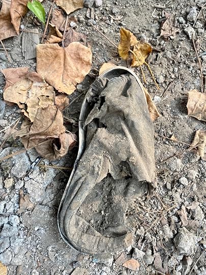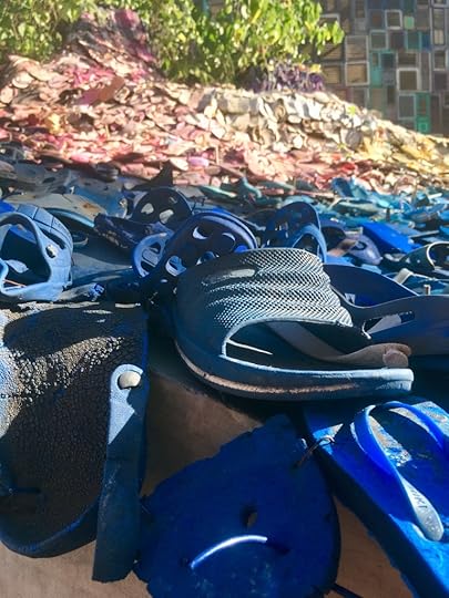 The beautiful rice fields surrounding our house. You can see the wooden fence around our land in the backgroundMy family and I recently bought land here in Bali–a blissful little piece of heaven overlooking vast rice fields and with the majestic over 3000 meter high volcano Mount Agung towering in the background–and started digging up the soil in order to plant vegetables and herbs and fill the land with tall, slender bamboo, fern and fruit trees, my awareness of the immense plastic pollution that we are facing here in Bali reached new heights. There were generations and generations of plastic in the soil! I almost felt like an archeologist; digging through layers, observing the different states of my findings. The further down we dug, the more old, dirty, yet hardly deteriorated, plastic surfaced. Some of the plastic that had clearly been there for years had the texture of parchment paper and was thin and porous, but still far from a state of deterioration. There were also old clothes, primarily made from polyester or rayon. I found shirts, socks, trousers, even shoes.