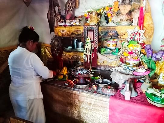 We were taken into a small room with a group of people, among them the widower and the young son as well as our friends. The shaman started chanting with closed eyes. Incense filled the room and everyone looked down quietly. After a while the shaman opened her eyes and started talking, addressing an elderly woman in the back of the room. Everything was happening in a mix of Balinese and Indonesian, so I wasn’t understanding a lot of the conversation, but my friend was explaining to me that it was the woman’s husband who was talking to her through the shaman. The woman was clearly affected and had many questions for the deceased husband.