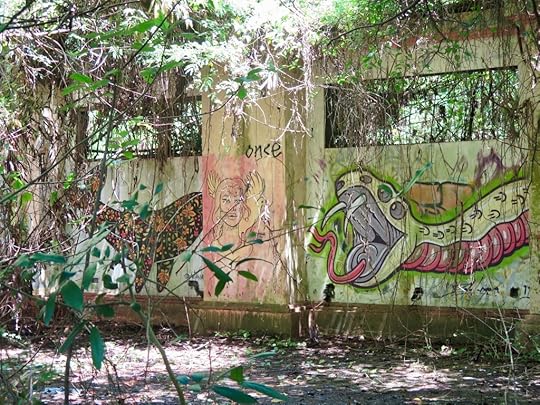 What cannot be explained is not trueI am riding my motorbike with my 14-year-old son on the back on a steaming hot Sunday from our house in the jungle towards the coast. The destination is an abandoned amusement park called Taman Festival Park that has apparently been taken over by tropical nature and graffiti art. We have no idea what to expect. I was tipped by a friend to check it out and have done a quick google search to find the location and seen a few intriguing photos. When we arrive at the empty parking area by the entrance to the park, we are met by a man who claims that we have to pay an entrance fee to him. As the amount is not unreasonable, and I am not in the mood to negotiate we pay him, and he points up some stairs and says: you can enter up there and adds (to our amusement) good luck. The ticket booths are covered in graffiti and the glass is shattered. We pass them and continue through the entrance gates.