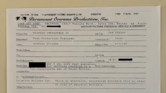 My contract as second editor on Mission: Impossible II Start date 6/4/99