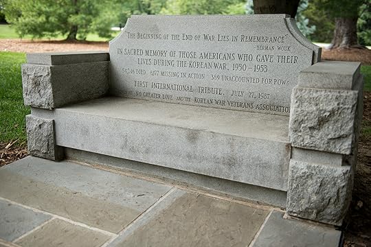 The Korean War Contemplative Bench is located on the north side of the Memorial Amphitheater beside the Korean White Pine tree donated by President Kim of Korea in 1965. The pine tree was replaced by President Roh Tae Woo on Oct. 17, 1989. A Korean Mountain Ash was planted behind the bench.The Eagle Glides, Its Talons Spread Wide