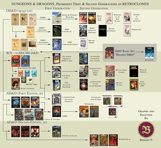 RT @BenoistPoire: Infographic showing the different versions of pre-WotC Dungeons & Dragons with the prominent retro-clones derived from them. The graphic is meant to be conveying info quickly and a conversation starter - it's not exhaustive nor can it be. See definitions in following tweets 1/*