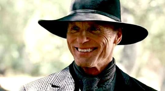Black coat, white horse, black hat, Ed Harris. (Feed gene...