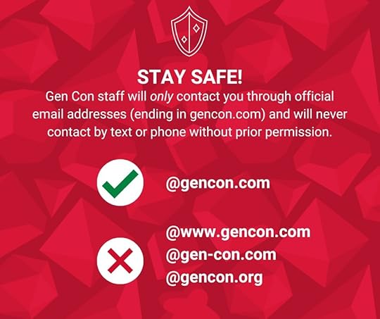 RT @Gen_Con: We're aware that there are harassers attempting to impersonate Gen Con attendees and staff via text and email. We encourage you not to engage with them and instead report any in concerns to policyteam@gencon.com or our safety consultant, @mx_danger.#GenCon #GenConIndy