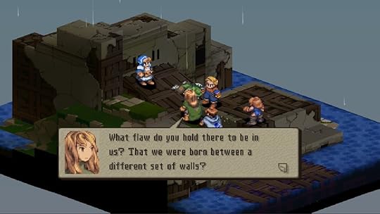 Final Fantasy Tactics has far more to say about class warfare than any other console game in existence.The struggle between Miluda (pictured) vs Algus (the upjumped squire with coifed hair) is a constant throughout.What follows is a sampling of their interactions: