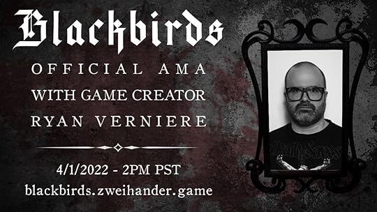 Want to know more about BLACKBIRDS RPG? Join creator Ryan Verniere over on @discord for an open chat AMA on April 1st at 4m CST/2pm pst.Join us: https://discord.gg/wfefXkJA?event=959160462480650380 https://twitter.com/blackbirdsrpg/status/1509597702404771842
