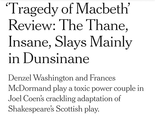 🧐 Hats off to the editor who wrote this title for The NY Times review of Tragedy of Macbeth.