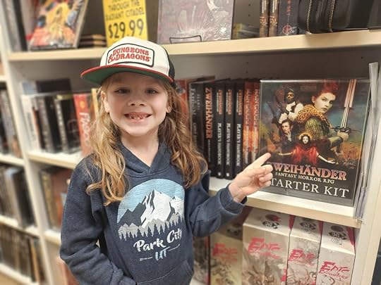 At our FLGS to pick up Jack's first painted figure for Rig his D&D rogue. He pulled me over to show me something familiar 🥹