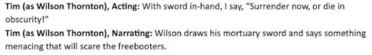 Some players act out their actions using improv in the first person. Others prefer to narrate their PC's ...