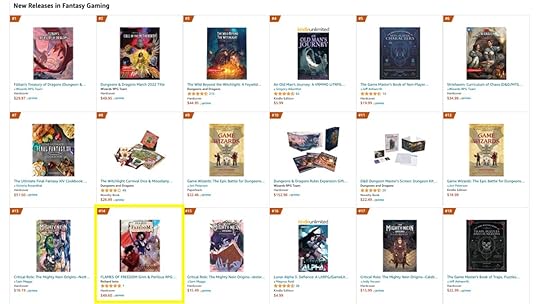 FLAMES OF FREEDOM is #14 in New Releases for Fantasy Gaming on Amazon, ranked next to Critical Role's The Mighty Nein!